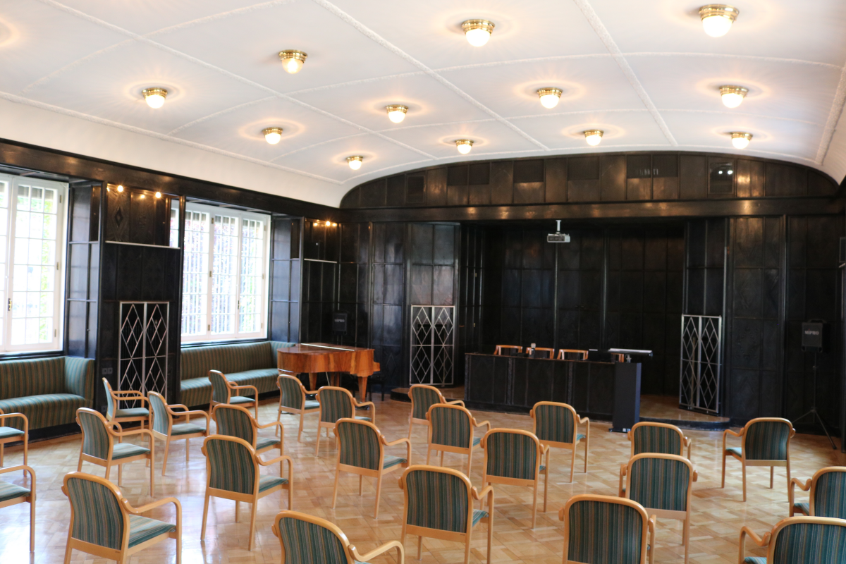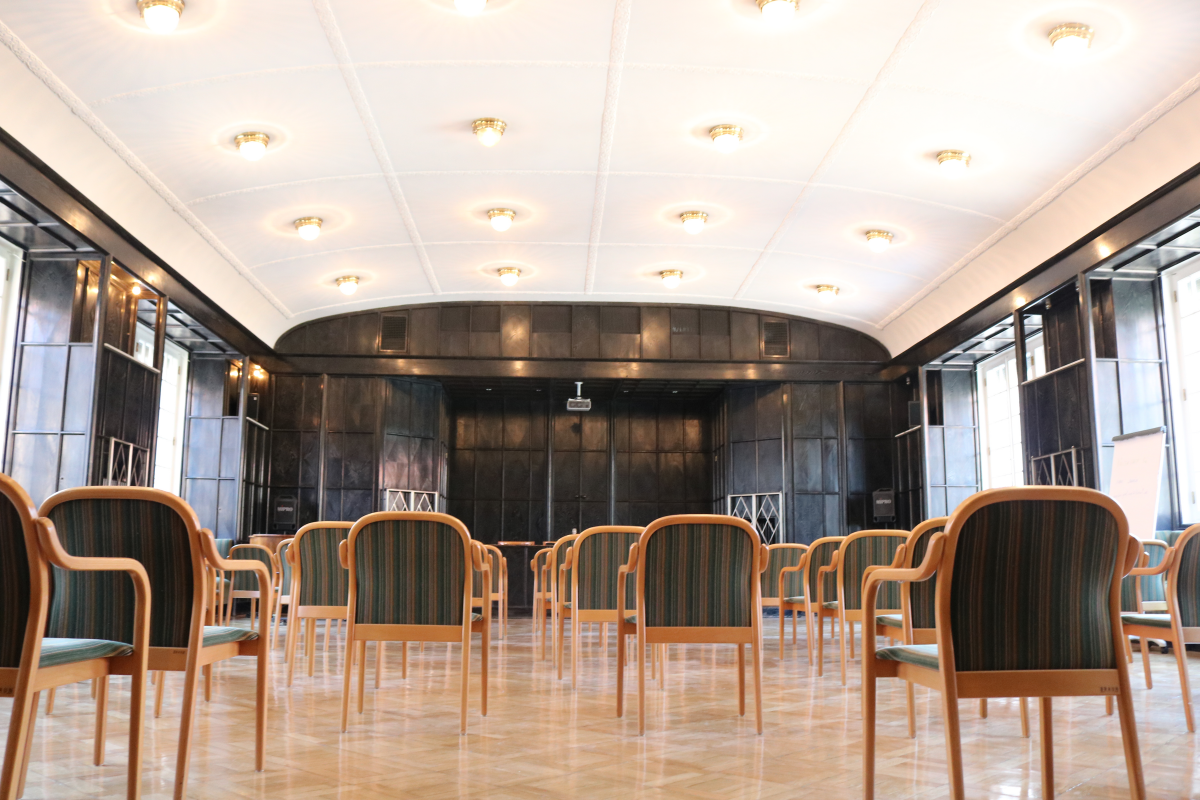Sie haben die Möglichkeit, diesen Saal mit entsprechender Infrastruktur und Nebenräumen für Tagungen, Seminare, Podiumsdiskussionen, Fotoshootings oder Filmdrehs zu mieten.