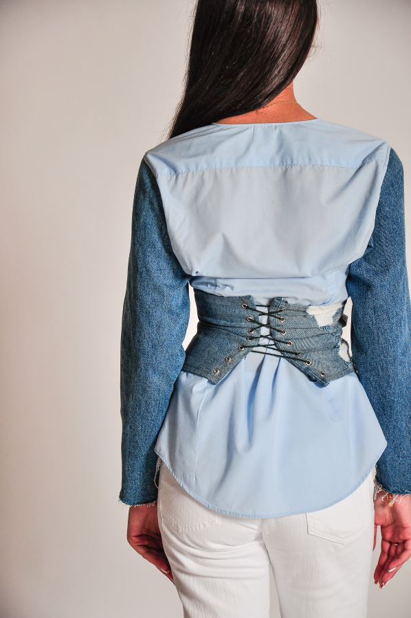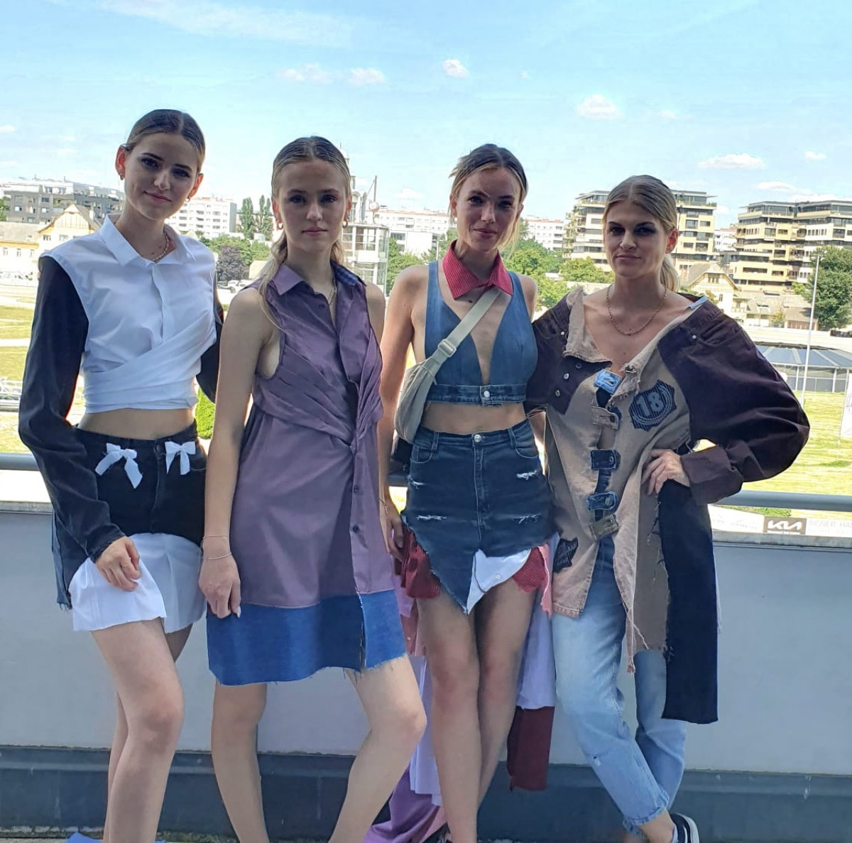 Für die Veranstaltung haben Schüler*innen der zweiten Jahrgänge der Modeschule Michelbeuern Outfits als Upcycling-Projekt entworfen und genäht. Die Jugendlichen hatten dafür lediglich die Vorgabe aus bereits getragenen Jeans und Hemden ein Outfit zu kreieren und zu nähen. Sie durften sich dabei mit dem Design in alle Richtungen frei bewegen.