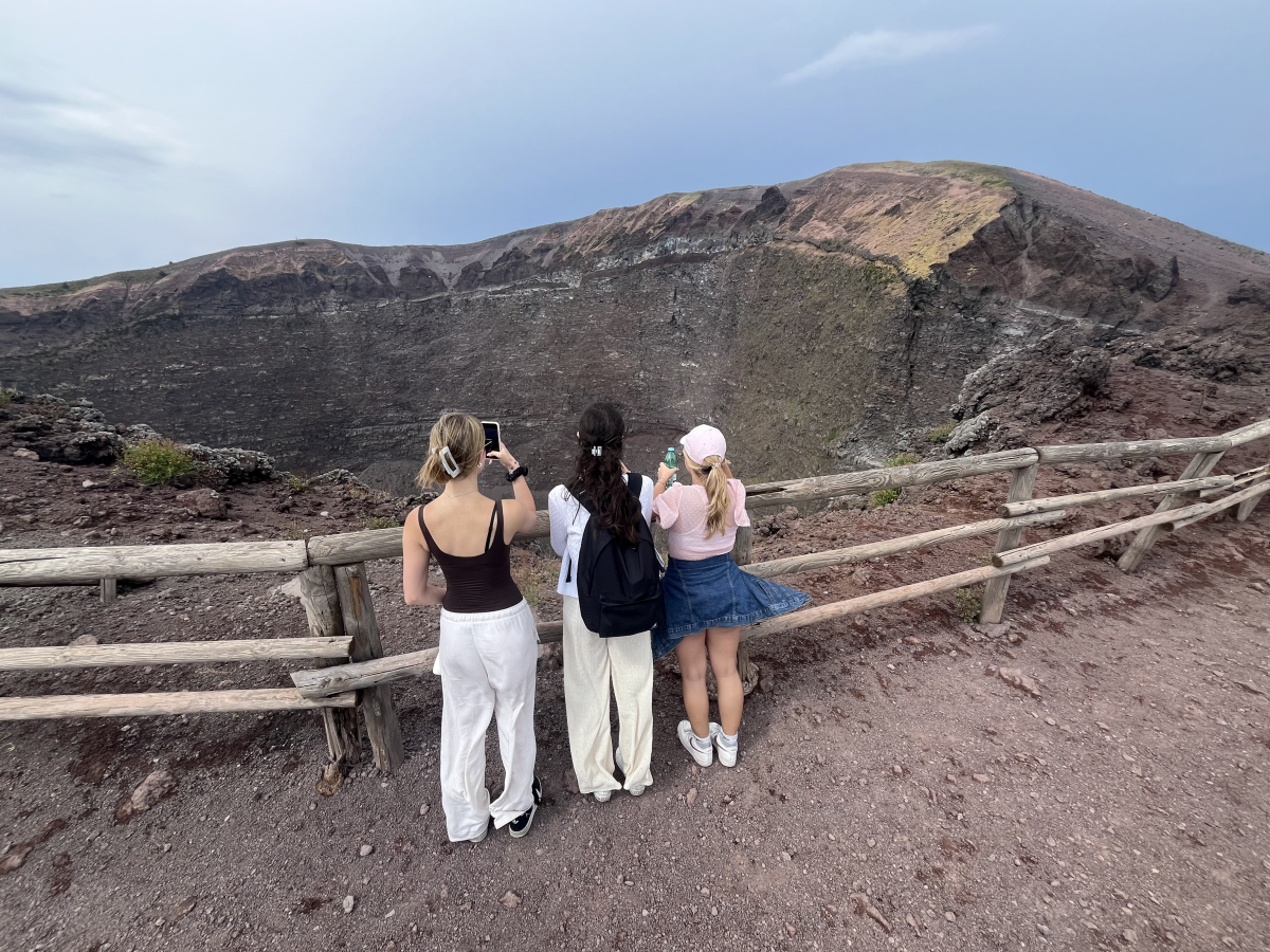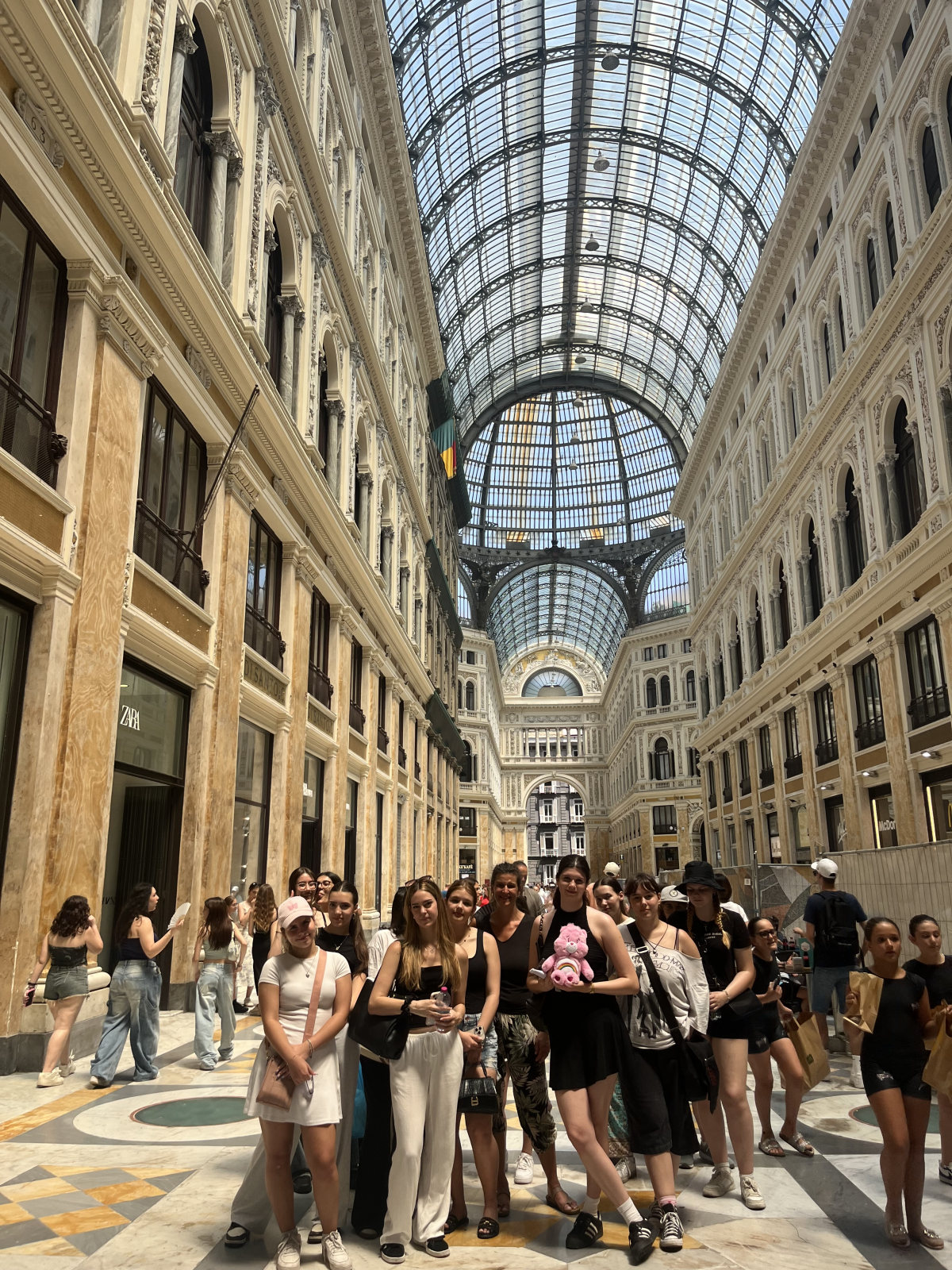 Gleich zu Beginn der Reise eroberten wir einen abenteuerlichen Markt, spazierten durch die berühmte Spaccanapoli, die Neapel in zwei Teile teilt, und sowohl traditionelle als auch touristische Geschäfte beherbergt. Dabei lauschten wir den Vorträgen der Schüler*innen, die die Stadtführung selbst gestaltet hatten. So erfuhren wir Spannendes über die Stadt selbst, den Dom, die Tradition der Krippenbauer, typische Spezialitäten und über verschiedene Stadtviertel Neapels.