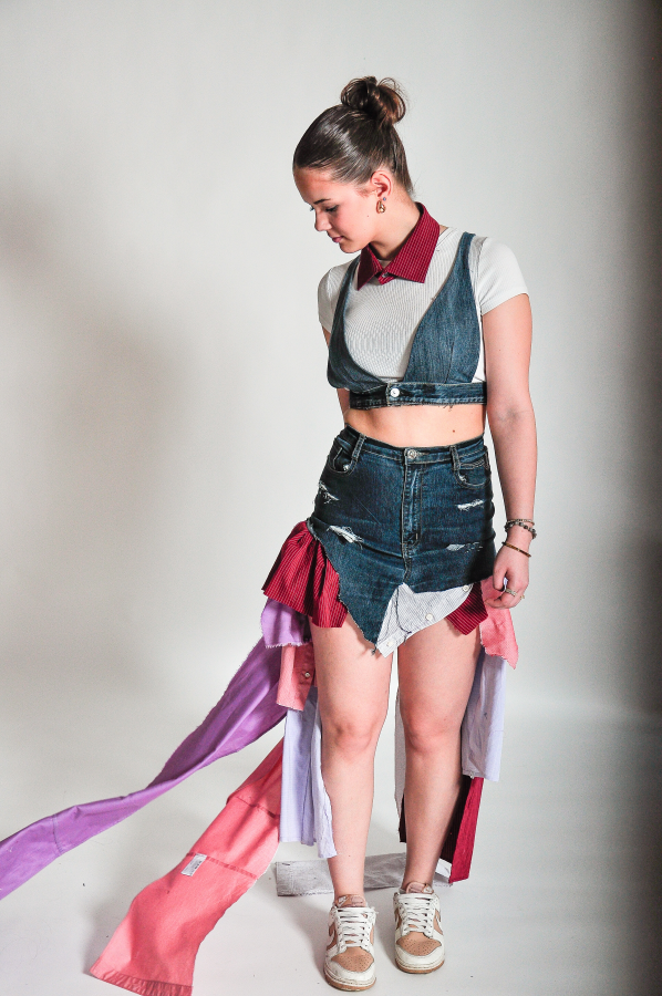Für die Veranstaltung haben Schüler*innen der zweiten Jahrgänge der Modeschule Michelbeuern Outfits als Upcycling-Projekt entworfen und genäht. Die Jugendlichen hatten dafür lediglich die Vorgabe aus bereits getragenen Jeans und Hemden ein Outfit zu kreieren und zu nähen. Sie durften sich dabei mit dem Design in alle Richtungen frei bewegen.