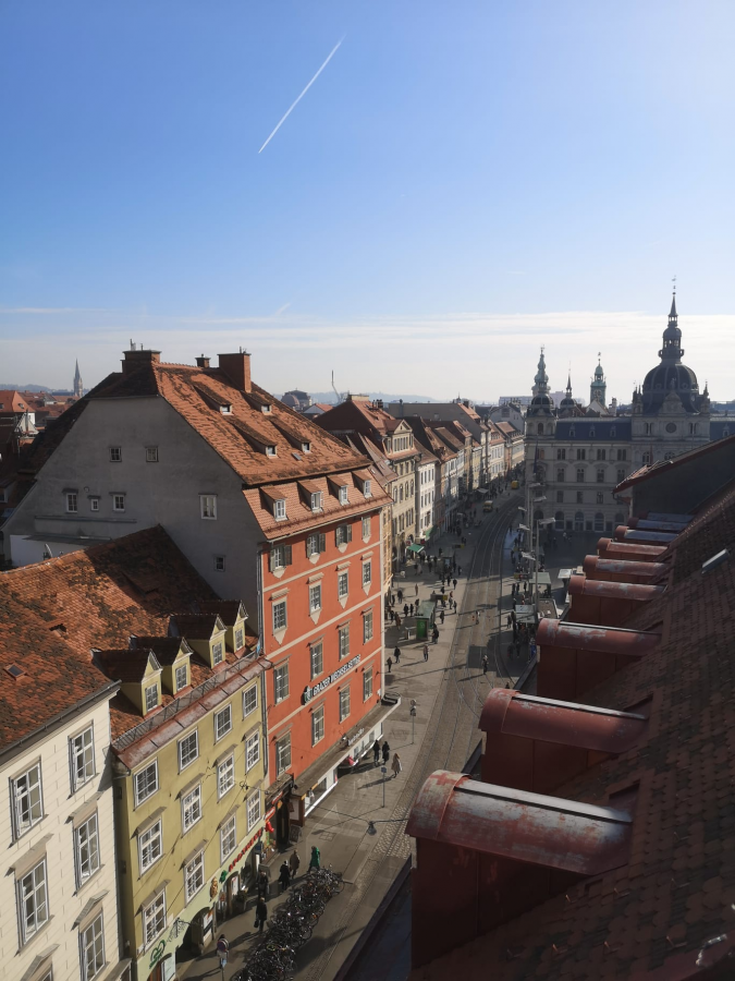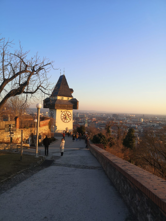 Am 29. Jänner 2024 startete unsere lang ersehnte Klassenreise mit Frau Illmeyer und Frau Spengler nach Graz! Nachdem wir unser Hostel bezogen hatten, wartete eine informative Stadtführung auf uns. Gleich danach haben wir den Schlossberg mit dem Uhrturm, das Wahrzeichen von Graz, erklommen. Für den Rückweg haben wir Europas längste Indoor-Rutsche, die Schlossbergrutsche, gewählt. Am Abend sind wir gemeinsam ins Kino gegangen, um den Film „Wo die Lüge hinfällt“ anzuschauen.