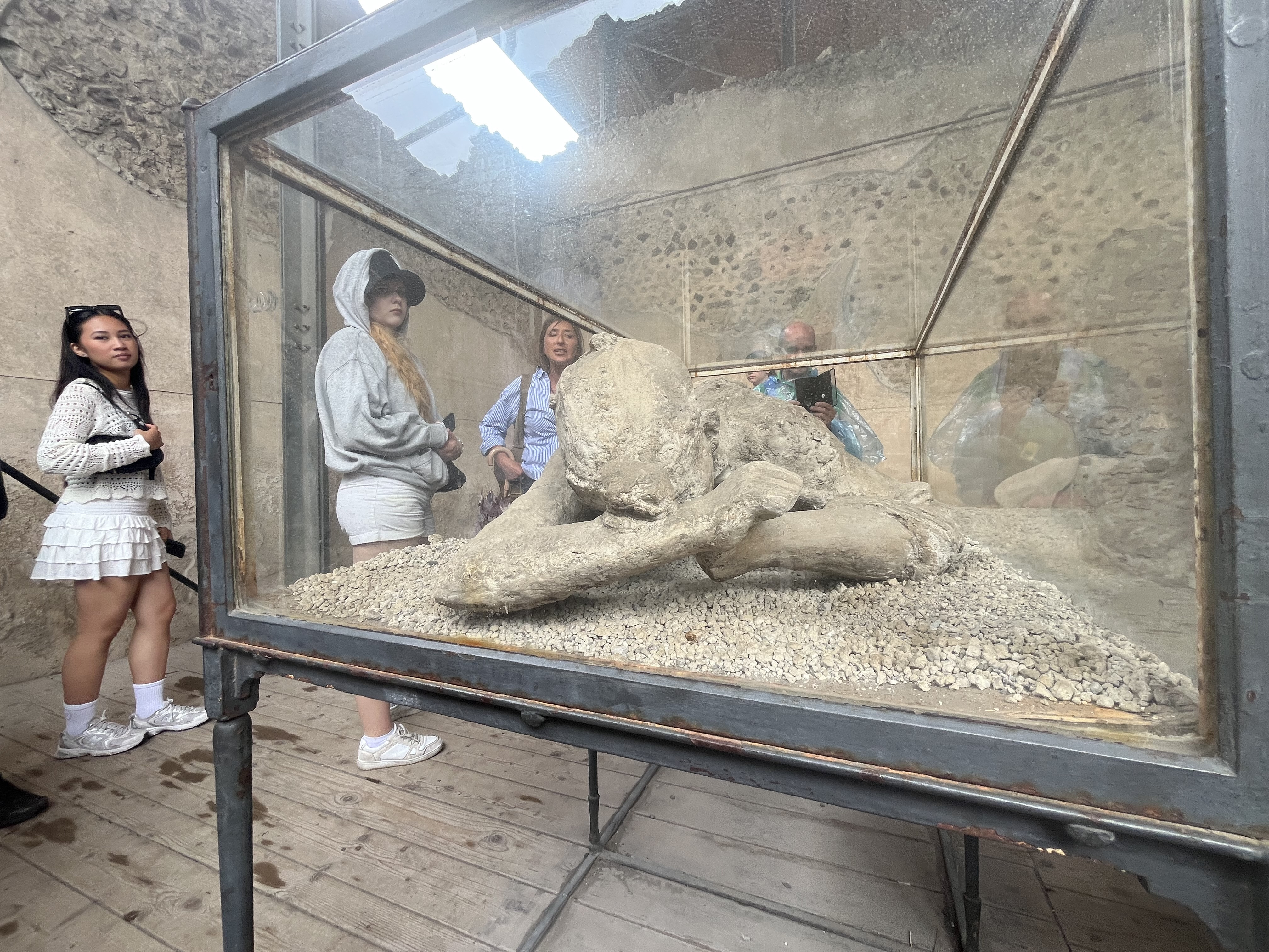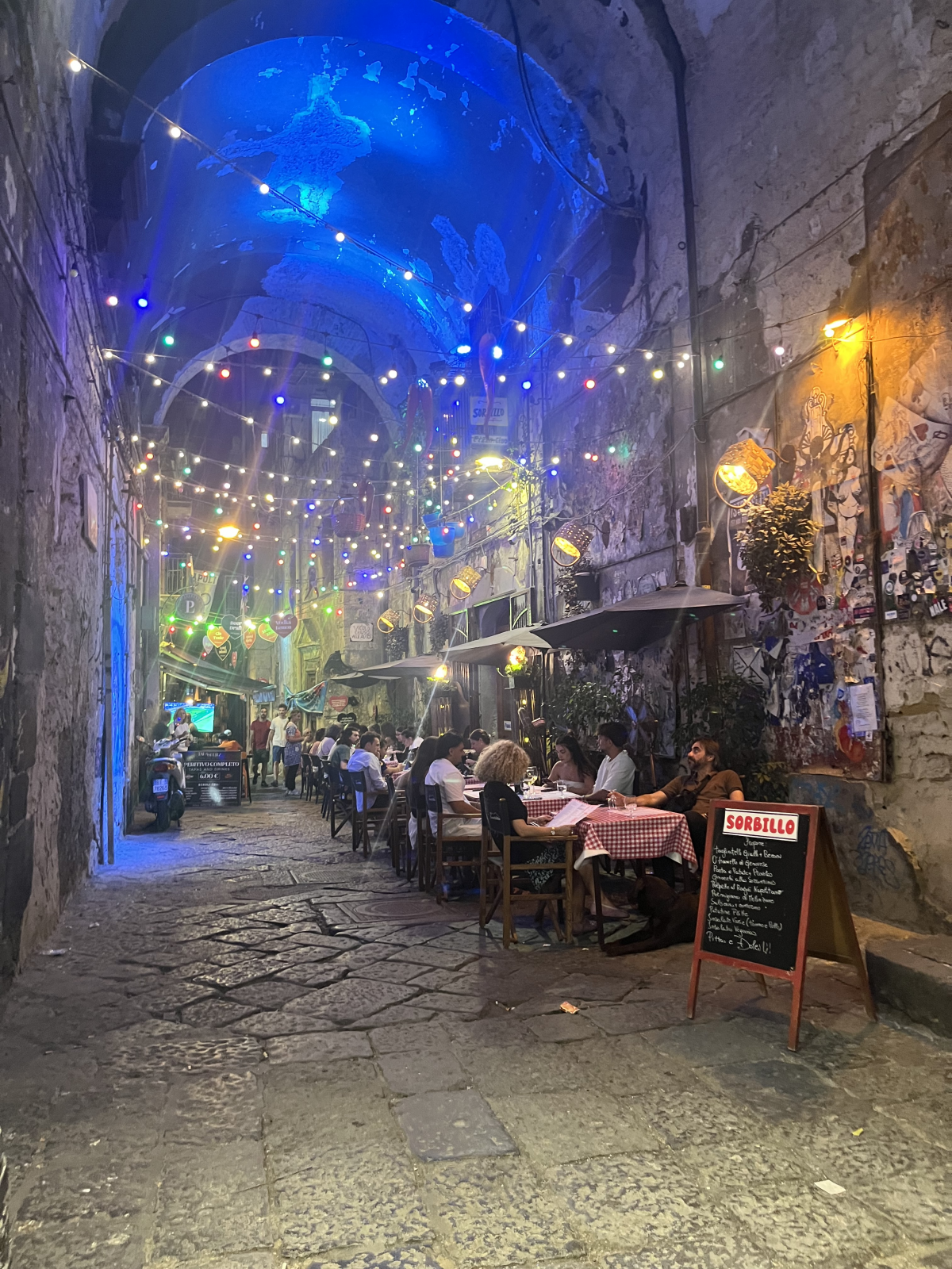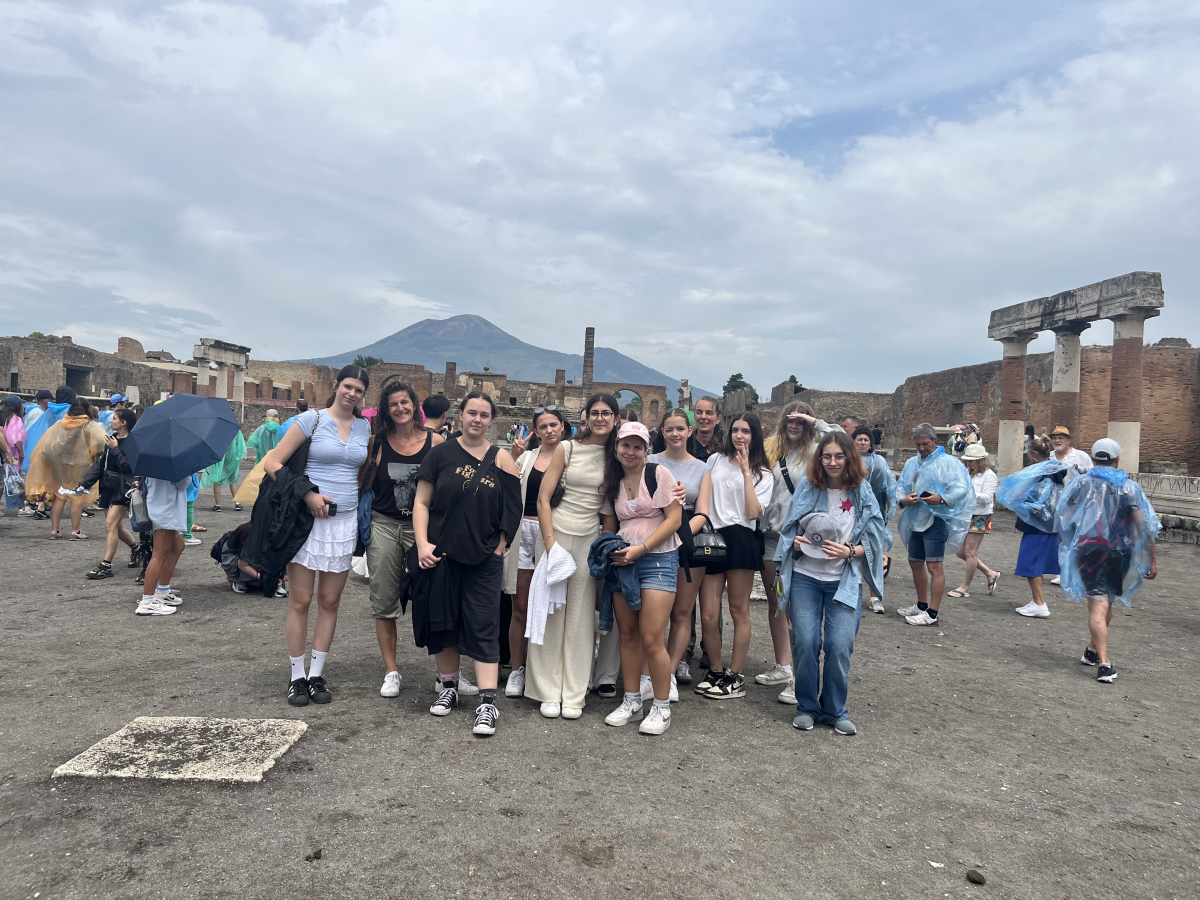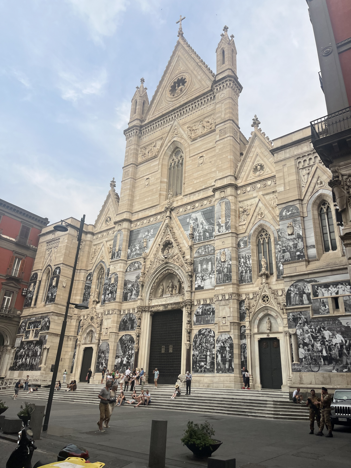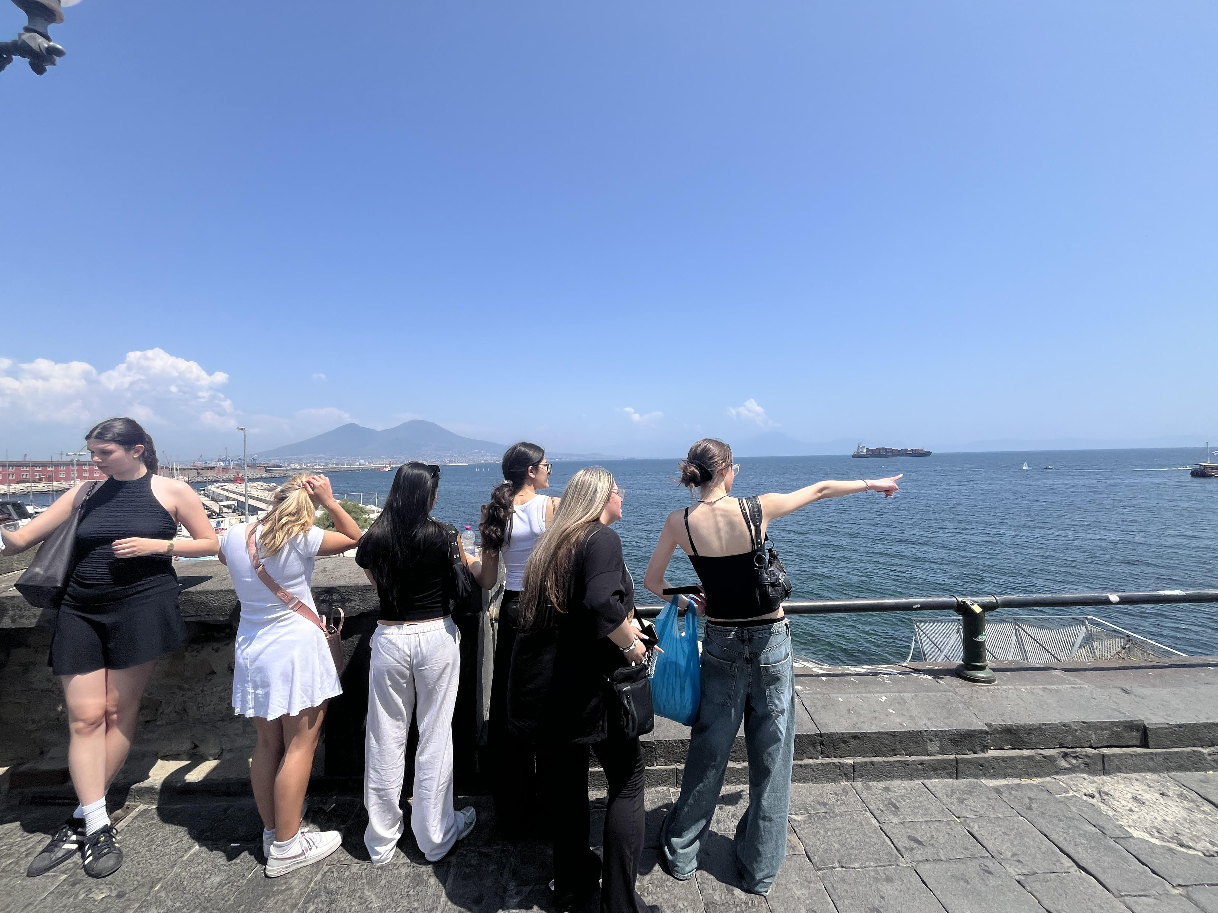 Gleich zu Beginn der Reise eroberten wir einen abenteuerlichen Markt, spazierten durch die berühmte Spaccanapoli, die Neapel in zwei Teile teilt, und sowohl traditionelle als auch touristische Geschäfte beherbergt. Dabei lauschten wir den Vorträgen der Schüler*innen, die die Stadtführung selbst gestaltet hatten. So erfuhren wir Spannendes über die Stadt selbst, den Dom, die Tradition der Krippenbauer, typische Spezialitäten und über verschiedene Stadtviertel Neapels.